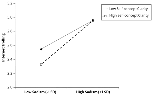 Figure 2. The Moderating Role of Self-Concept Clarity in the Relationship Between Sadism and Internet Trolling.