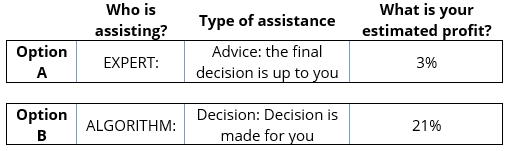 algorithmic aversion; technology acceptance; agency; delegation; trade-off; conjoint-choice experiment