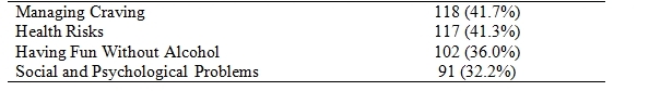 Table 2. Number of subjects viewing each educational module from alcoholcheckup.com